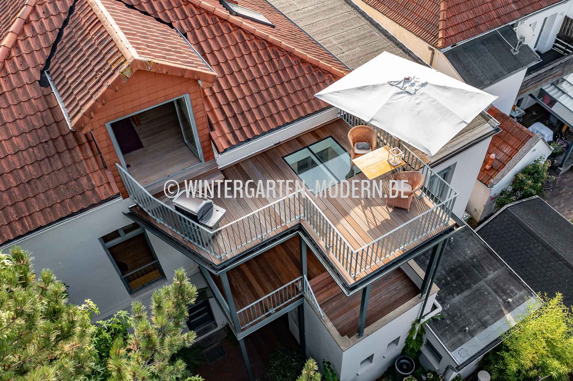 Dieses exklusive Dachterrassenprojekt beeindruckt mit einer großzügigen, zweistöckigen Dachterrasse, die modernes Design und hochwertige Materialien perfekt vereint. Die zweifarbige Ausführung, abgestimmt auf die vorhandenen Fenster und Türen, fügt sich harmonisch in die bestehende Architektur ein und unterstreicht den eleganten Gesamteindruck.